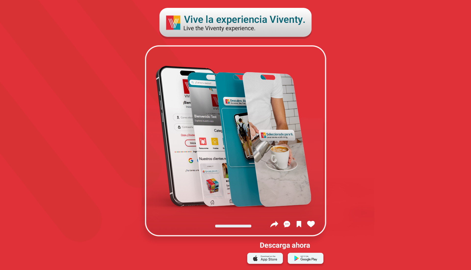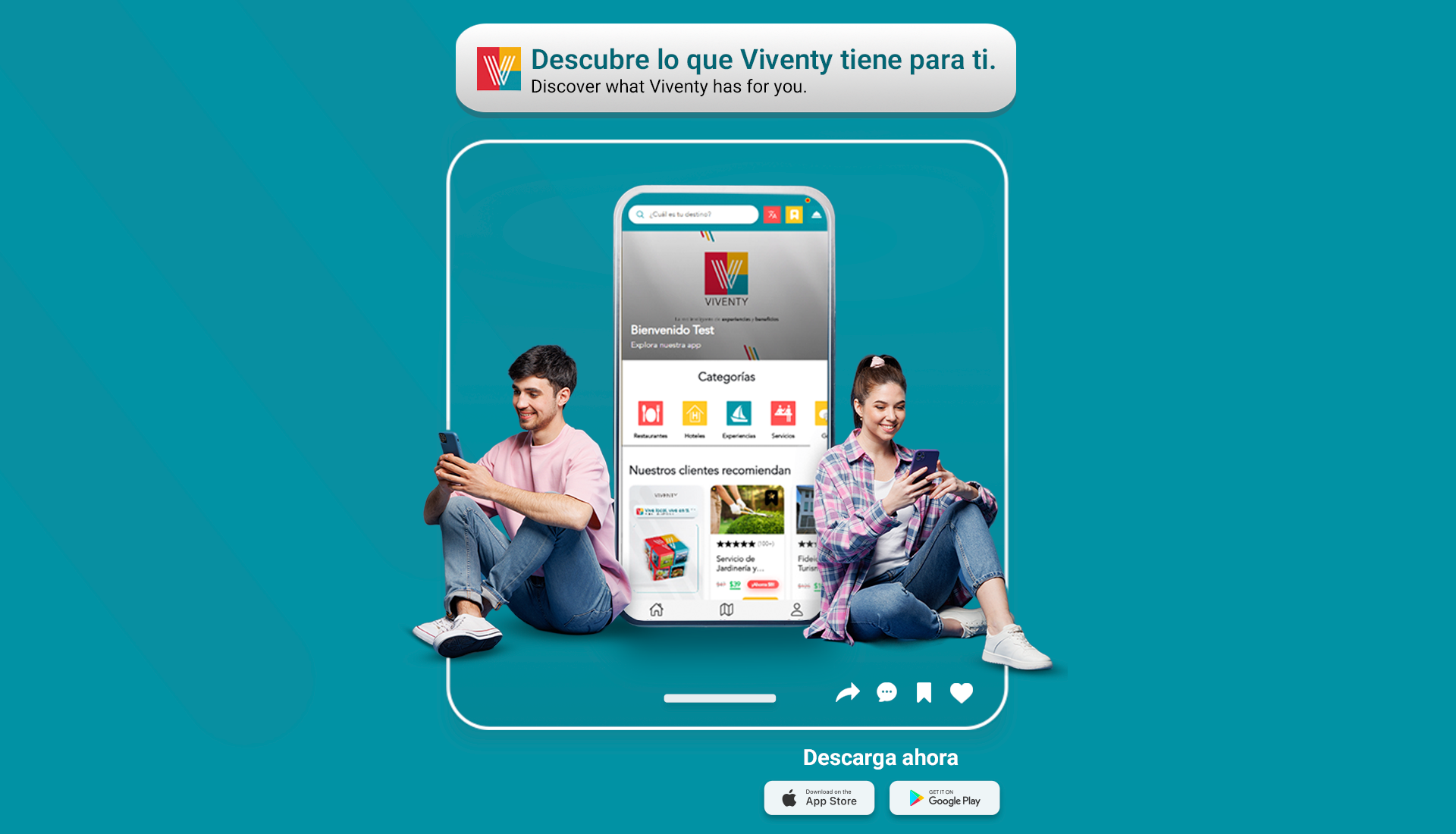 Con Viventy, disfrutar de tus hoteles, restaurantes y servicios favoritos nunca fue tan gratificante. Accede a promociones exclusivas, acumula recompensas y vive cada salida como una oportunidad de ganar. Tu estilo de vida, ahora con ventajas.